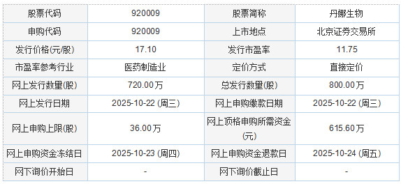 丹娜生物2025年10月20日披露的向不特定合格投资者公开发行股票并在北京证券交易所上市发行公告显示,若本次发行成功,预计公司募集资金总额13,680.00万元,扣除发行费用2,223.08万元(不含增值税)后,预计募集资金净额为11,456.92万元。